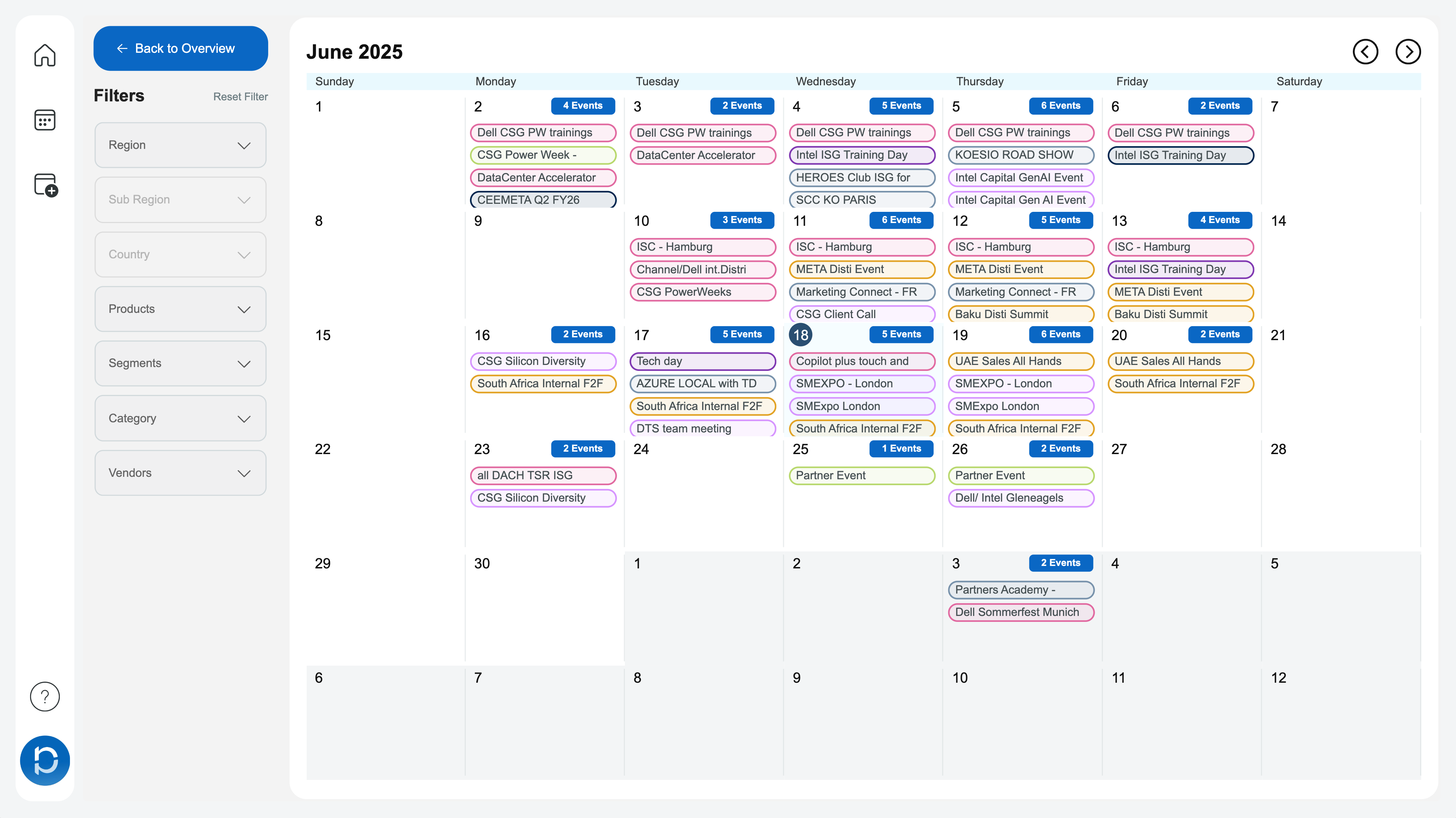 The design centered on a comprehensive dashboard built in PowerApps that allows users to submit and manage event participation. I prioritized flexibility by creating a system that allows users to toggle between monthly, weekly, and daily calendar views. This ensures that both in-house teams and field staff can track events in a way that suits their specific workflows.